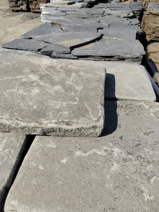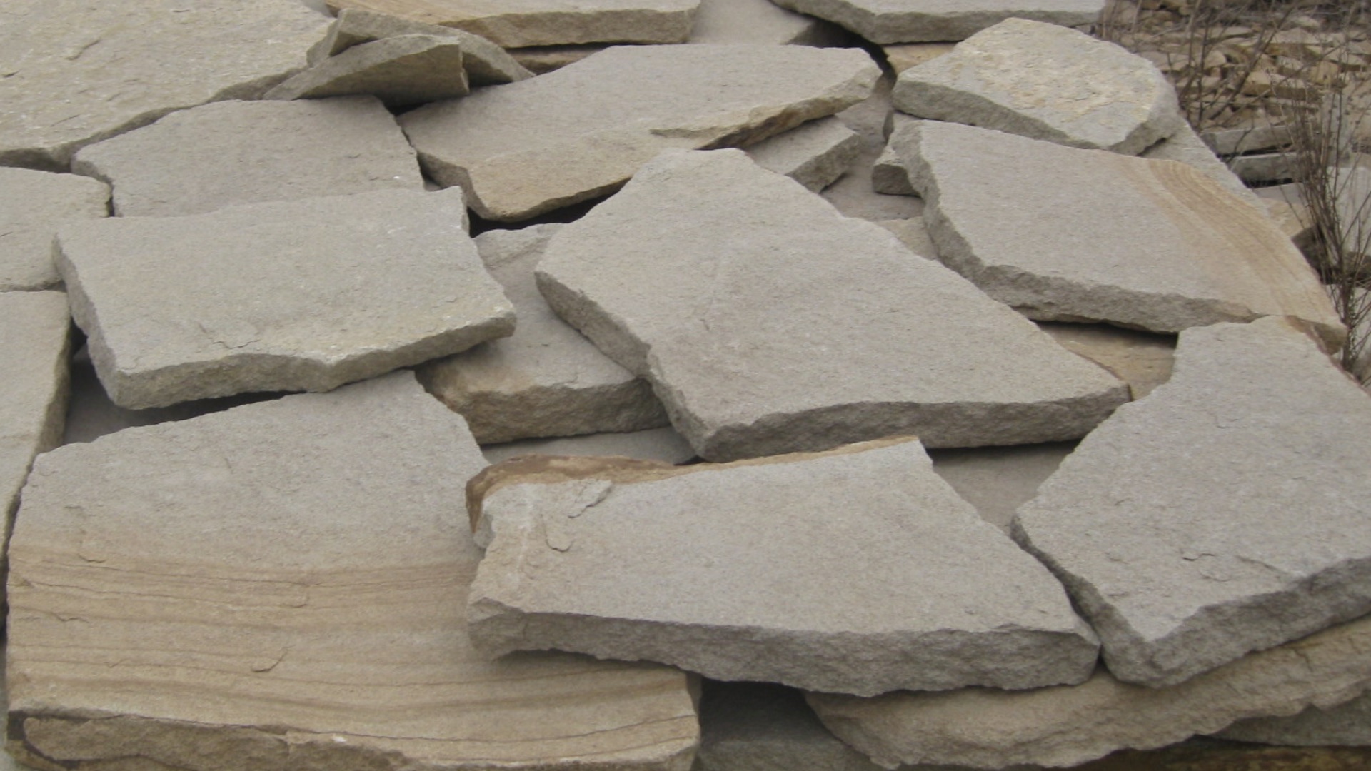 • Kamenclub.ru: Песчаник пластушка светло-серый (2,0 см)  купить во Владимире плитняк- ластушка светло-серый, серый рваный ландшафтный плитняк колотый 13800 руб/м3   фото КАМЕНЬ КЛУБ